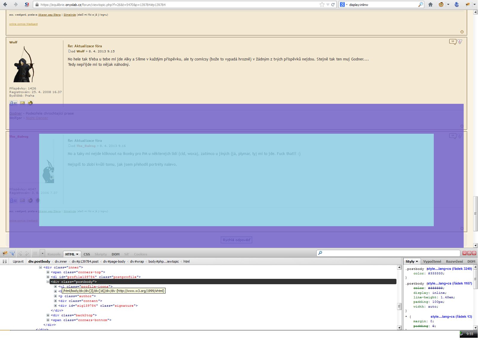 (Tyjo ale fakt tomu nerozumím. v podpisu tohohle příspěvku mi na Silmelinde kliknout jde, v tom předchozím nejde. Pff.)