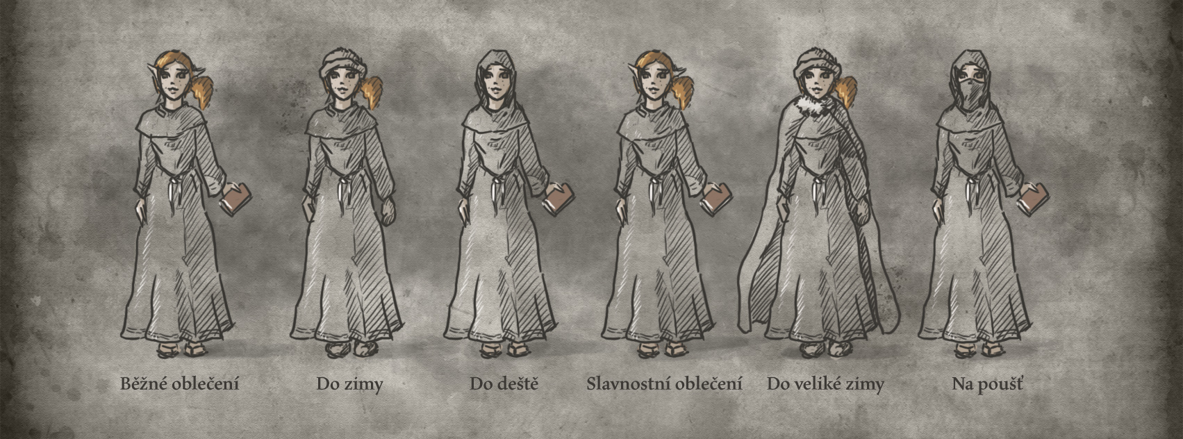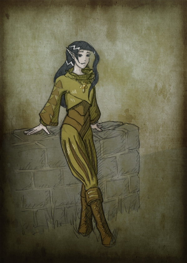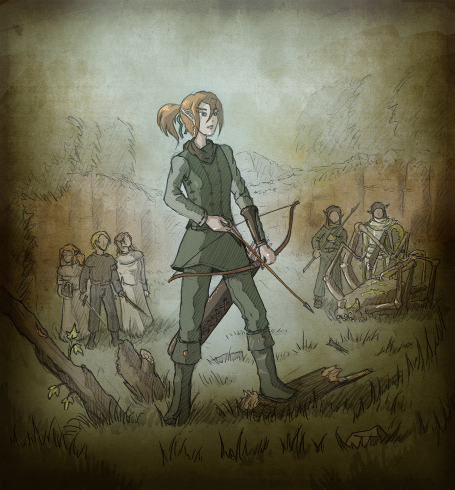 To oblečení lukostřelkyně mi vždycky přišlo dost “broučí”. Proto jsem Ezel asi kreslila sedící :))
